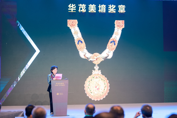 美堉奖章程,获奖者会获得一枚金质奖章、一张证书,并附有奖状和50万元人民币奖金。现场,中国工艺美术大师、“程氏花丝”创始人程淑美也对奖章进行了介绍发布。